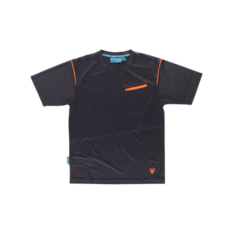 Camiseta de manga corta en tejido Honeycomb. Cuello redondo y cortes decorativos. Un bolso de pecho con cierre de cremallera de nylon. Cinta decorativa personalizada en la espalda. Deportiva, ligera y de secado rápido.