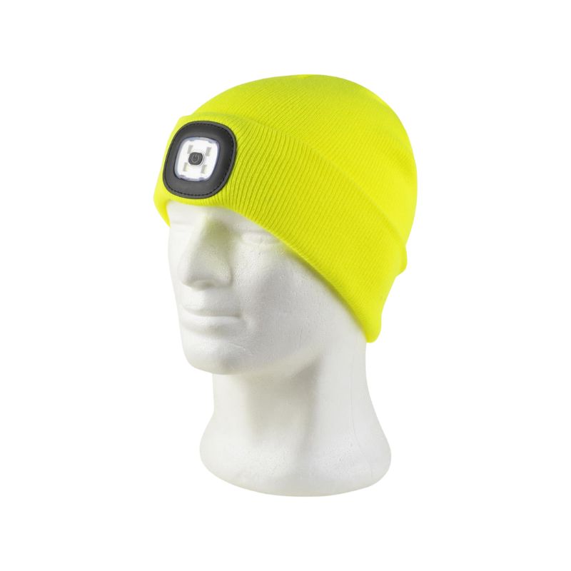 Gorro liso de punto con luz frontal de cuatro led. Vuelta en el bajo y luz extraíble para lavar.