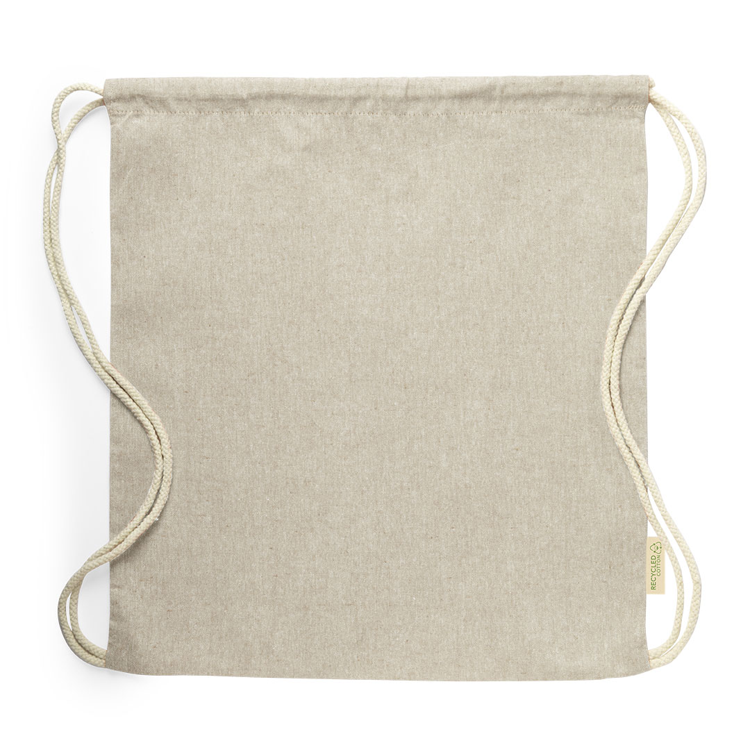 Mochila de cuerdas de línea nature en material 100% algodón reciclado de 120 g/m2. Cuerdas autocierre en algodón, con distintivo eco en etiqueta lateral y disponible en variada gama de colores nature. Resistencia hasta 9kg de peso.