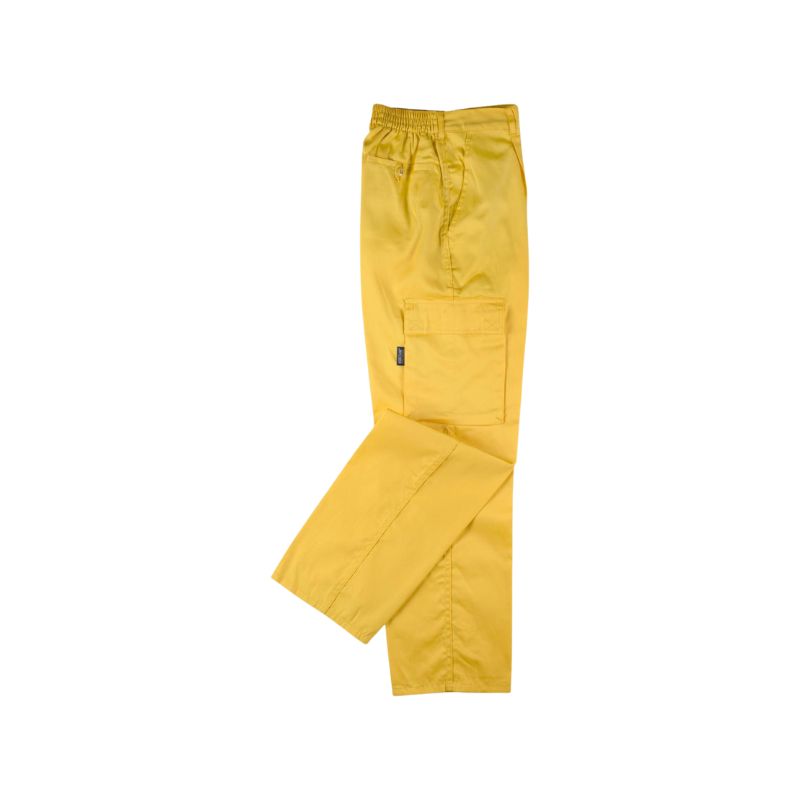 Pantalón recto con dos bolsos de abertura inclinada en los costados, dos bolsos laterales de carga con cartera de velcro. Un bolso trasero de ojal con cierre de presilla y botón. Elástico en la cintura. Trabillas. Cierre de botón y bragueta de cremallera.