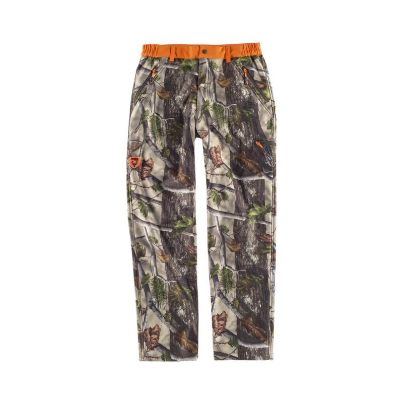 Pantalón Workshell estampado con motivos vegetales, con cinturilla a contraste. Dos bolsos de abertura inclinada en los costados y un bolso lateral, todos interiores con cremallera de cierre invertido. Pinzas en rodillas. Elástico en los laterales de la cintura y cubrecosturas interior. Trabillas. Cierre de corchete metálico y bragueta de cremallera.