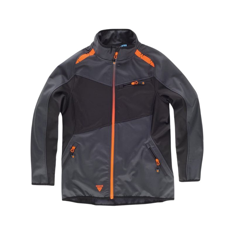 Workshell de mujer combinada. Cuello alto con cierre de cremallera de nylon. Solapa protectora interior vuelta en la parte superior cubriendo la cremallera. Un bolso de pecho y dos bolsos laterales interiores con cierre de cremallera de nylon. Cinta decorativa personalizada en hombros. Cuello, puños y bajo ribeteados con bies elástico personalizado. Tejido corta vientos, repelente al agua y resistente al desgarro con membrana interior transpirable y aislante e interior de alta capacidad térmica.