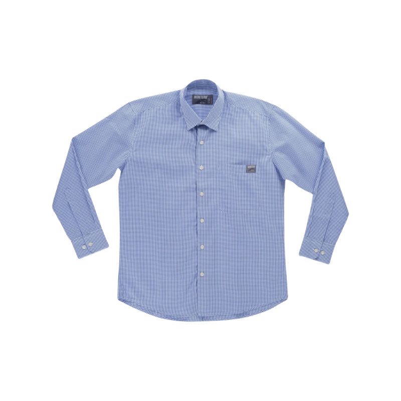Camisa de cuadros con cuello clásico y cierre central de botones. Manga larga con puño de botón. Un bolso de pecho de plastón abierto. Espalda con canesú. Costuras reforzadas, bajo redondeado y botones.