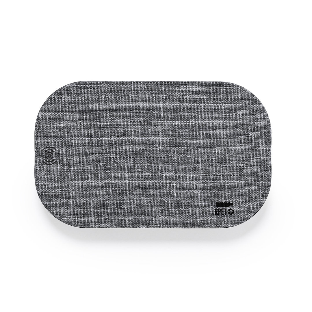 Cargador inalámbrico de línea nature, con práctico diseño ovalado y función carga inalámbrica de 10W. Fabricado en poliéster RPET, elaborado a partir de plástico reciclado, para así fomentar la reutilización de residuos plásticos y ayudar a la sostenibilidad del planeta. Cable de carga incluido, base antideslizante y compatible con dispositivos equipados con tecnología de carga inalámbrica. Presentado en atractiva caja de diseño eco. Distintivo RPET sobre el artículo.