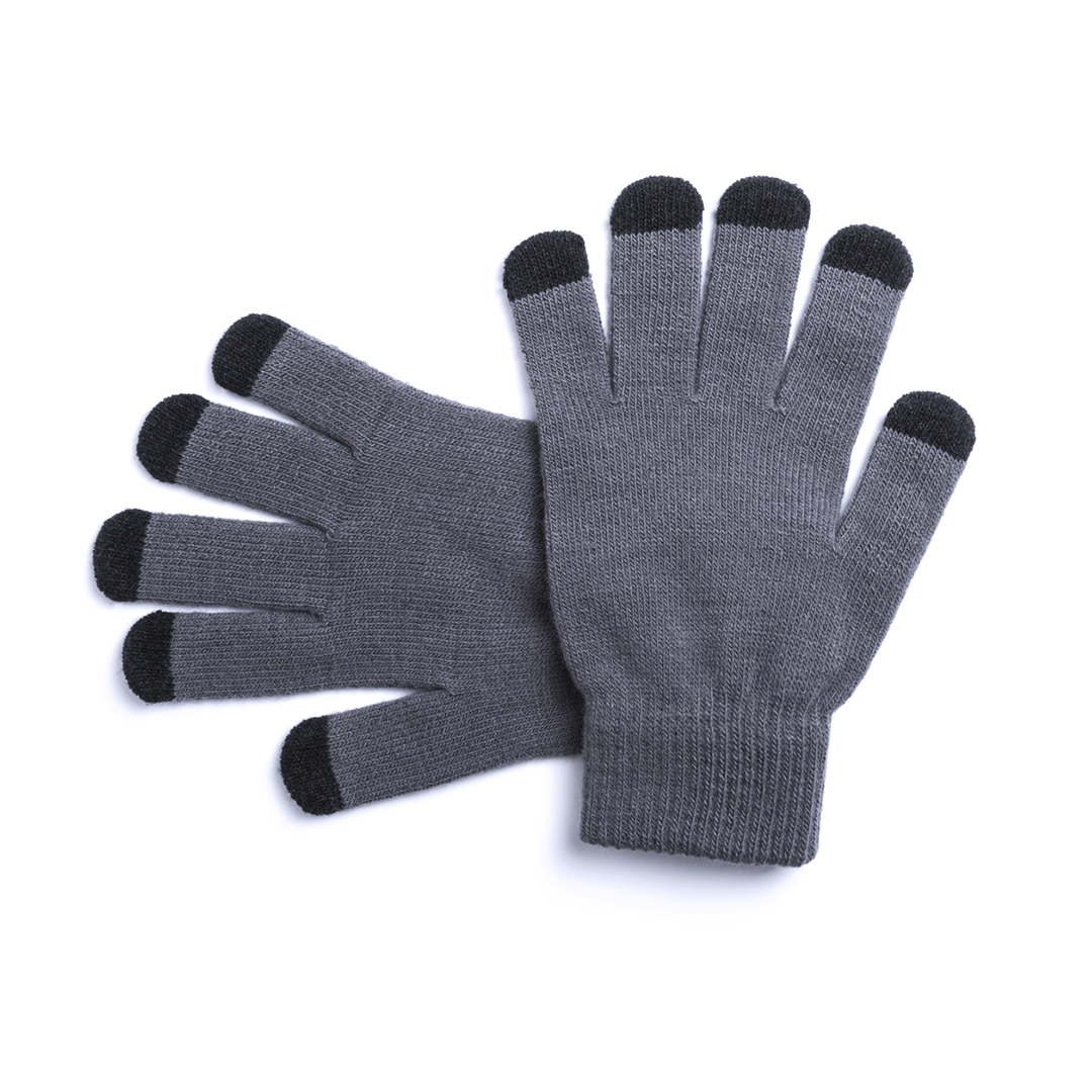 Práctico par de guantes para dispositivos con pantalla táctil de cálido y suave acabalado acrílico. Integran puntero en todos los dedos para experiencia táctil completa. Talla única