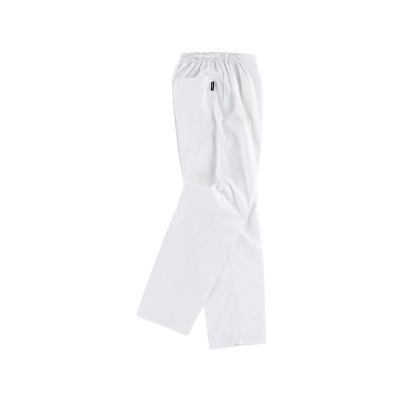 Pantalón sanitario unisex en algodón. Un bolso trasero de plastón. Elástico en la cintura. Cierre de botón y bragueta de cremallera. Ligero, hipoalergénico y de tacto suave.
