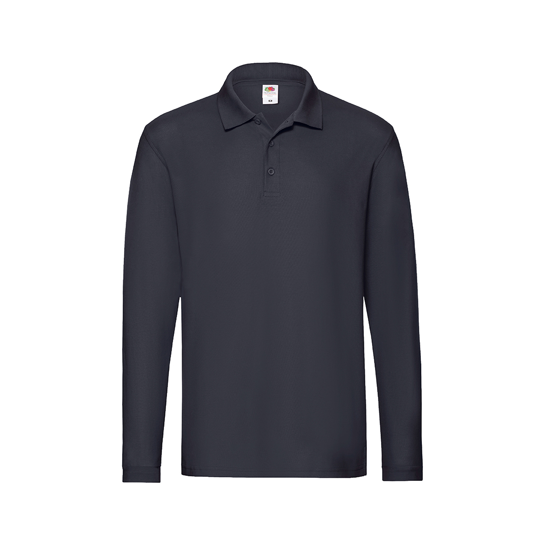 Polo adulto de manga larga Premium Long Sleeve de Fruit Of The Loom. Fabricado en material 100% algodón de 180g/m2 de tacto suave y corte clásico. Con aberturas laterales para un óptimo ajuste, tapeta de tres botones con teñido a juego y puños el algodón/elastán. Disponible en variada gama de colores. Tallas S, M, L, XL, XXL.