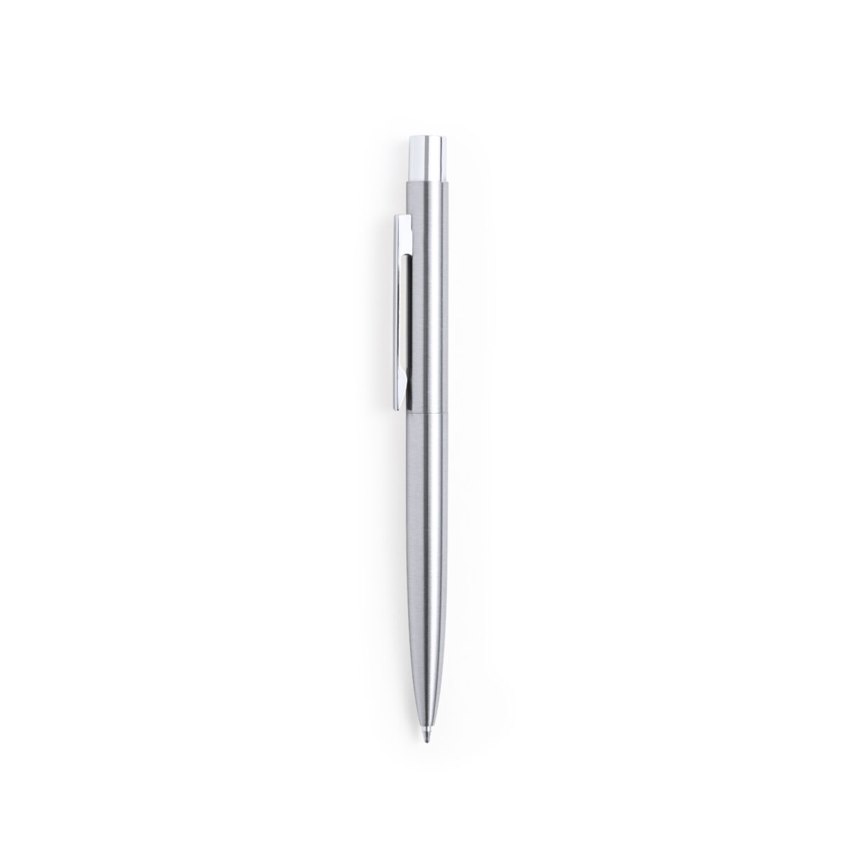 Bolígrafo eco-friendly fabricado en acero inox reciclado. De mecanismo pulsador, con cuerpo en acabado plateado y accesorios en cromado. Clip metálico y distintivo acero inox reciclado en la parte superior del bolígrafo. Cartucho jumbo y tinta azul.Set presentado en estuche individual de diseño kraft con funda a juego.El acero es uno de los materiales más demandados y que puede encontrarse casi en todas partes, desde productos de uso diario a grandes construcciones. Con innumerables propiedades, entre las que cabe destacar la durabilidad y su alto grado de reutilización, convirtiéndolo en una alternativa muy valorada en soluciones de sostenibilidad. Debidamente tratado, permite obtener nuevos recursos de infinita utilización.